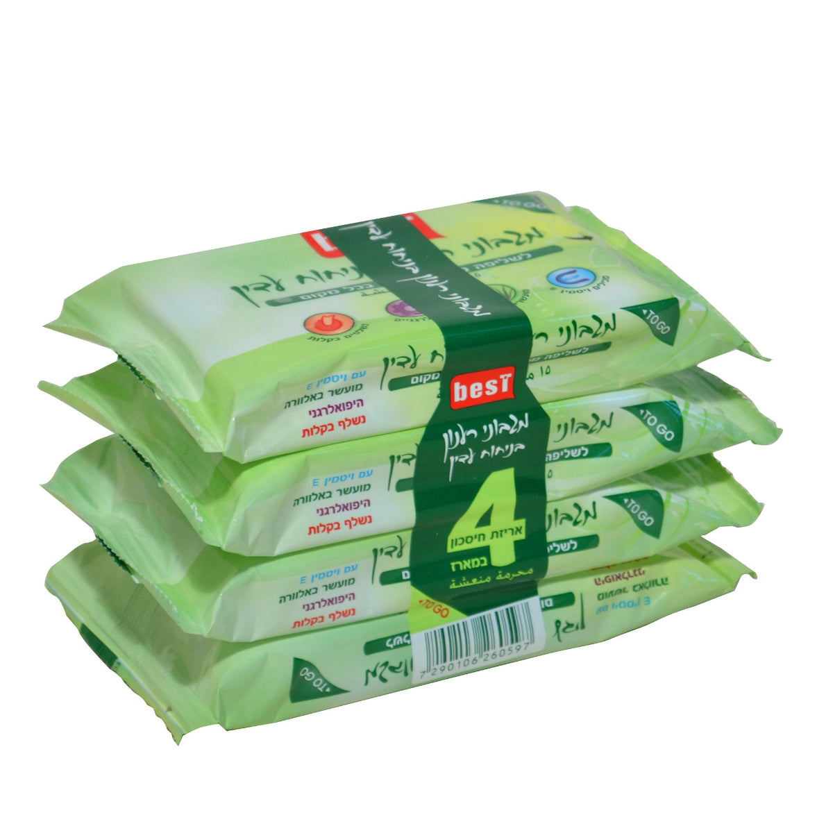 תכולה: 4 חבילות שכל אחת מכילה 15 י"ח מגבונים.