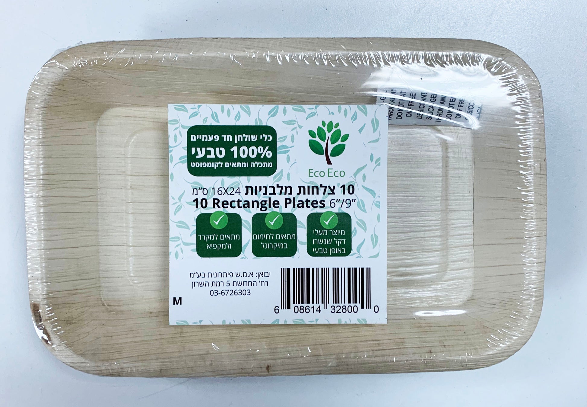 צלחות מלבניות 16/24 מתכלה מעלי דקל 10 יח' - Eco Eco/Mitkalim