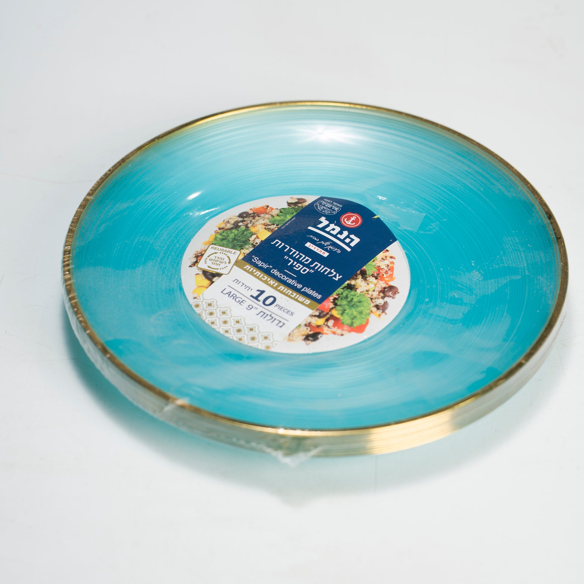 צלחות מהודרות ספיר משובחות ואיכותיות גדולות תכלת 9" 10 יח' - הנמל