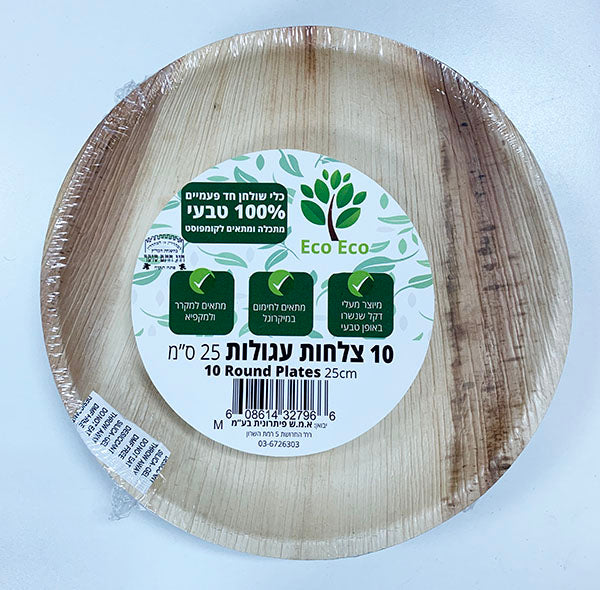 צלחות עגולות גדולות 25 ס"מ מתכלה מעלי דקל 10 יח' - Eco Eco