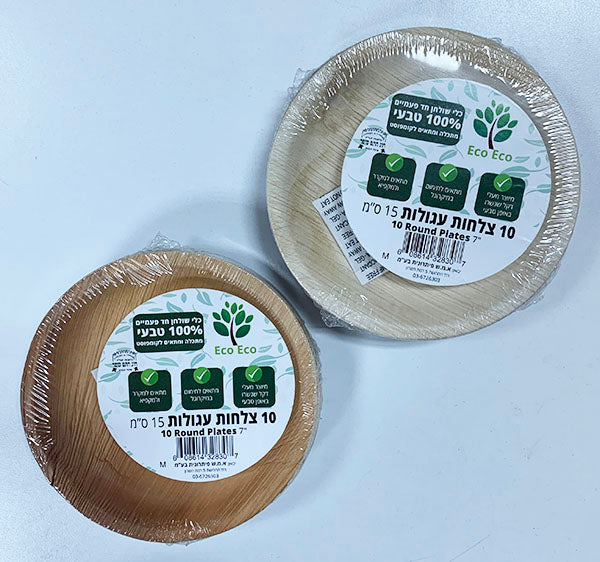 צלחות עגולות קטנות 15 ס"מ מתכלה מעלי דקל 10 יח' - Eco Eco/Mitkalim